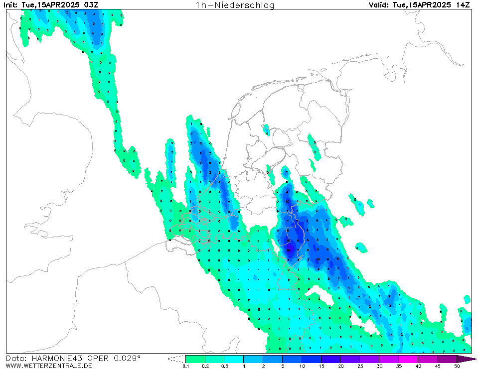 Als ik kijk waar de meer stevige buien starten volgens Harmonie dan mogen we hier ook hoop houden