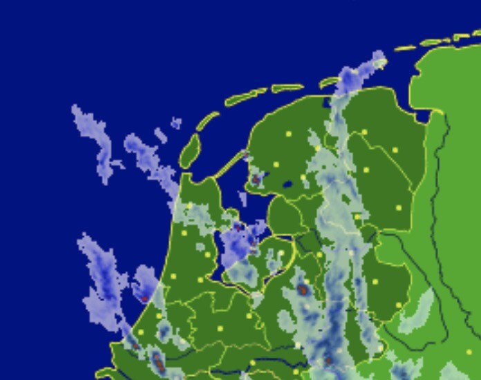 Ten zuiden hier nu een erg donkere lucht, ook rode pit op de radar