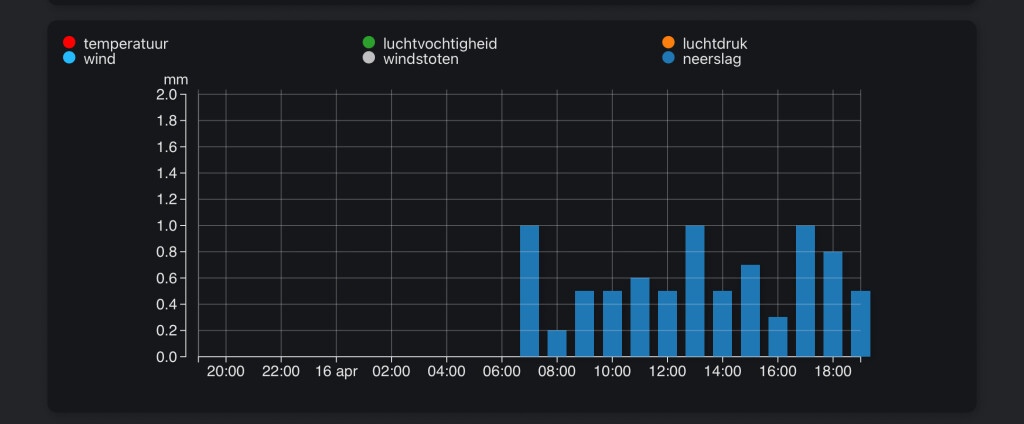 De 10 mm is bijna aangetikt. Met gisteren erbij 19.5 mm neerslag