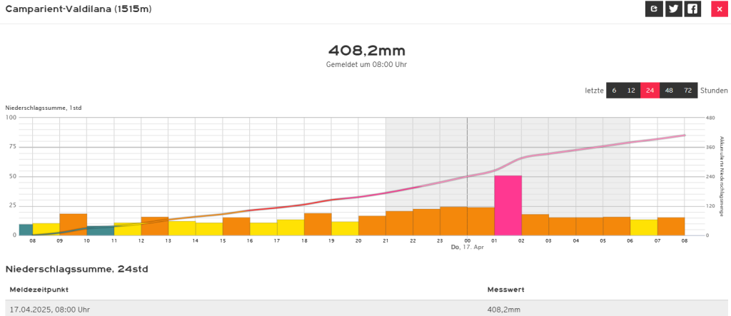 Is de hoogste som die ik tot nu toe tegenkwam. Veel inzet van hulpdiensten, zo ook in het zuiden van Zwitserland. Door neerslagafkoeling is de sneeuwgrens regionaal naar 500 meter gezakt ook de stad Aosta (580m) is momenteel gehuld in wit. Het sneeuwdek loopt vooral boven 1800 meter behoorlijk op met op uitgebreide schaal meer dan een meter, ook in Franse skigebieden zoals Tignen en Val Thorens. Vrijwel alle skigebieden zijn wegens lawinegevaar gesloten. Ook veel wegen, spoorwegen en tunnels in de regio zijn afgesloten en in diverse dalen is de stroom uitgevallen.