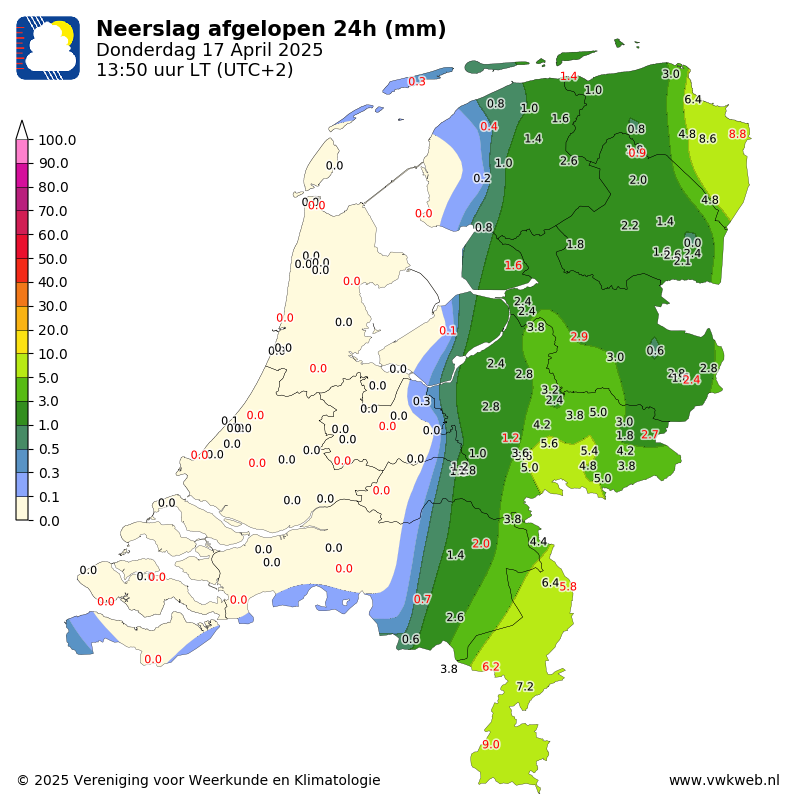 4.3 mm in Tegelen. Maand 28.2 mm. Natte 3-daagse