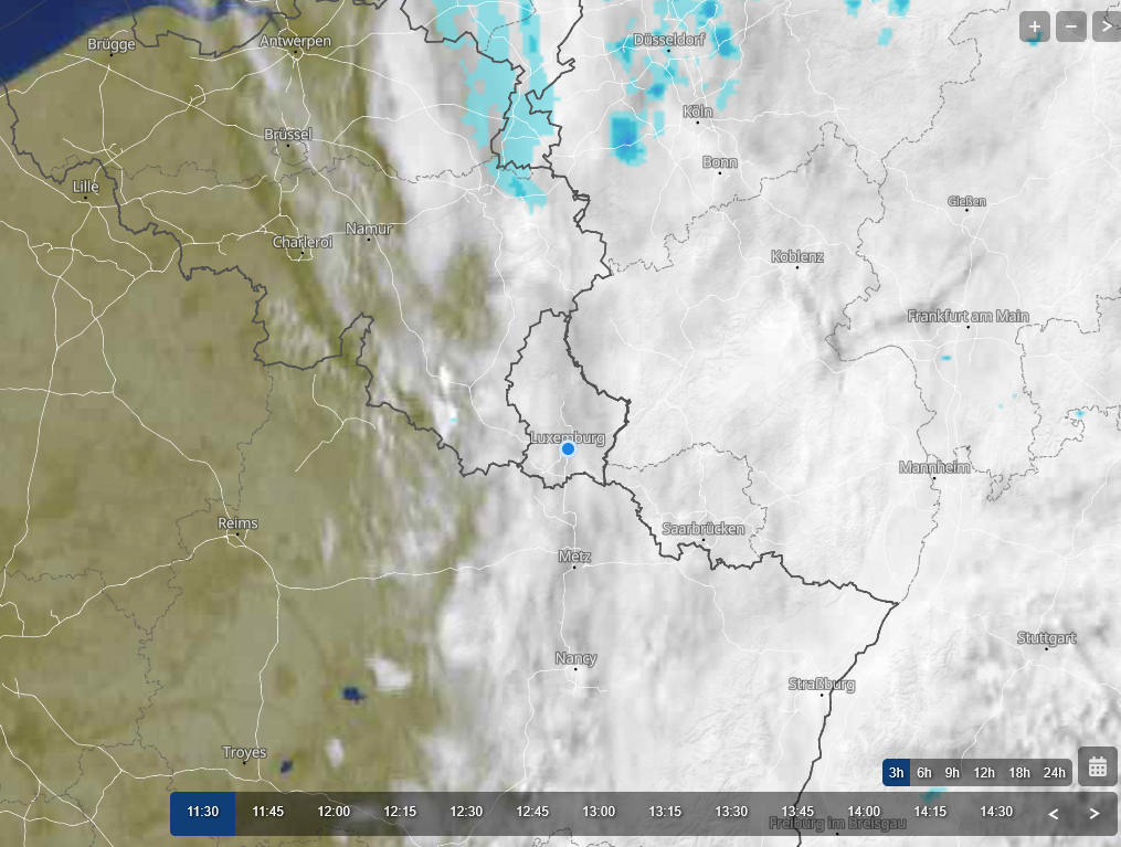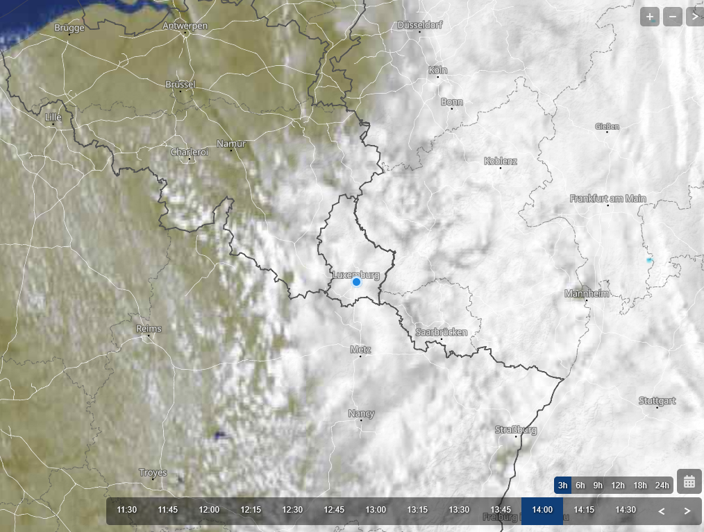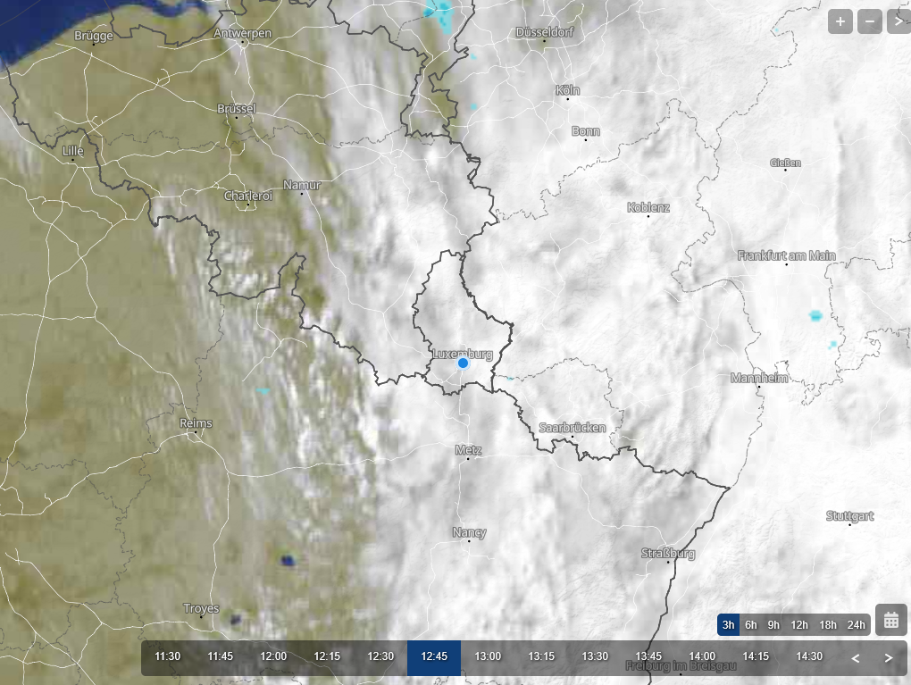 Dit typisch Duitse woord maakt duidelijk wat er gebeurd is: vanuit het westen leken er opklaringen aan te komen, maar op de nadering ervan worden nieuw wolken gevormd, zodat de wolken de overhand houden en de grens met de opklaringen niet of nauwelijks dichterbij komt. Dat is te zien op deze satellietbeelden.
