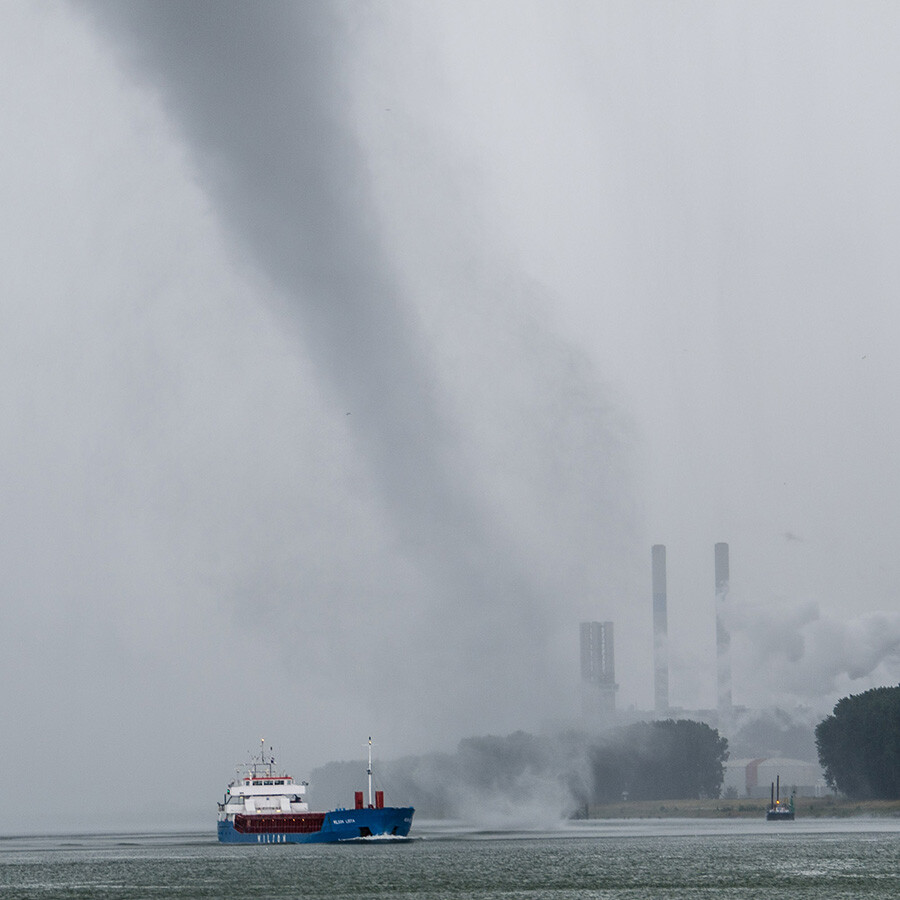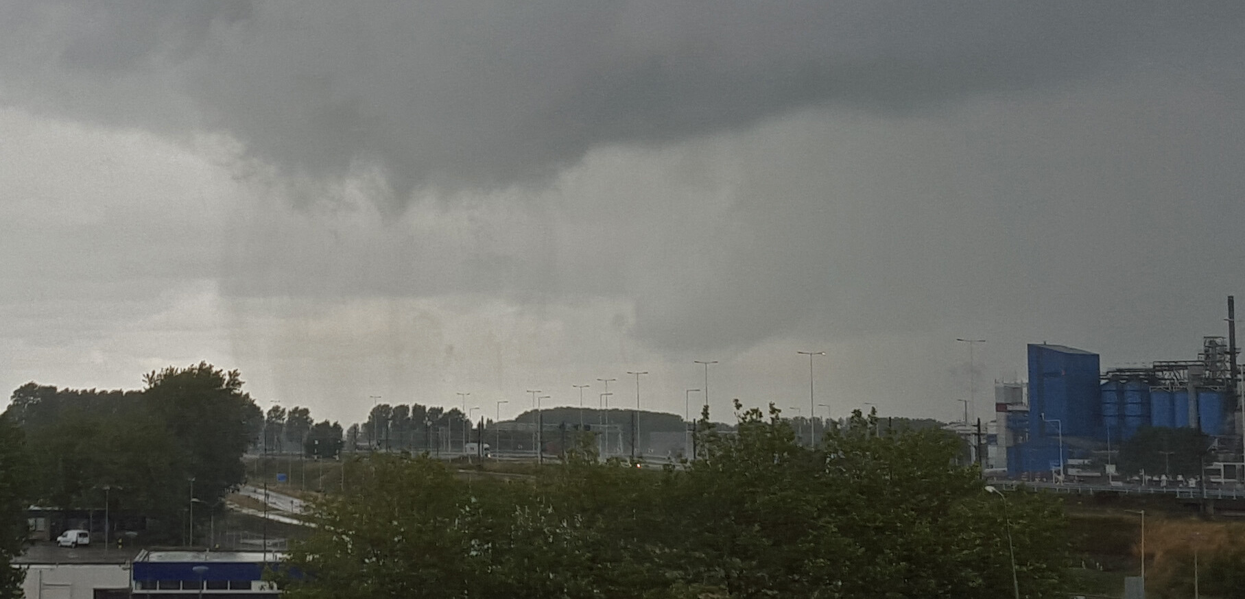 Toen ik een fototoestel gepakt had was deze funnel met snel rond draaiende regen nog te zien: