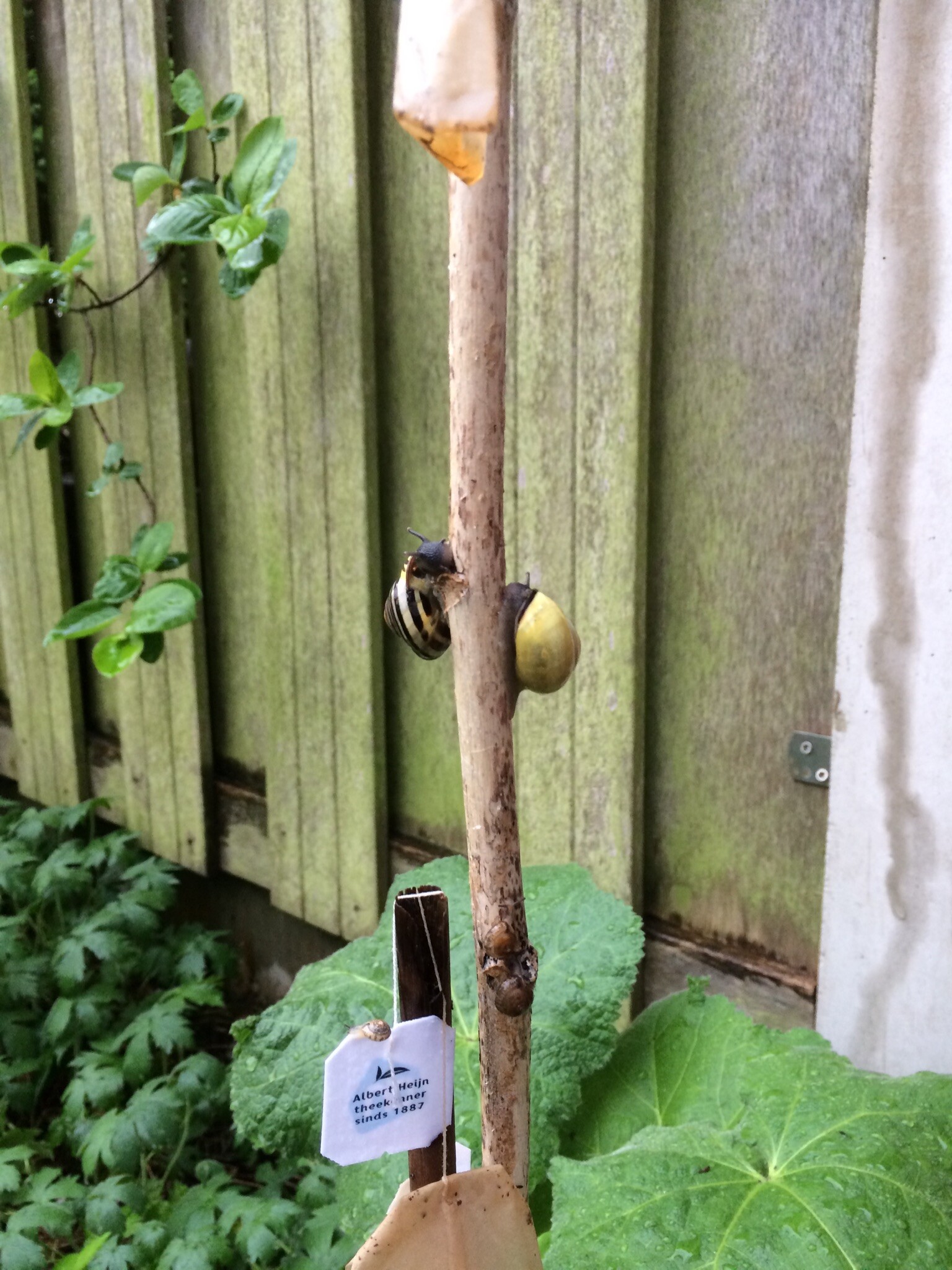 gezellig samen teaën op de stokroos ; in de regen.