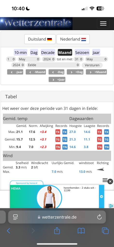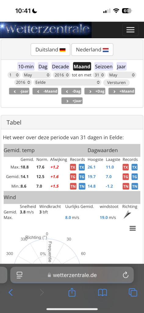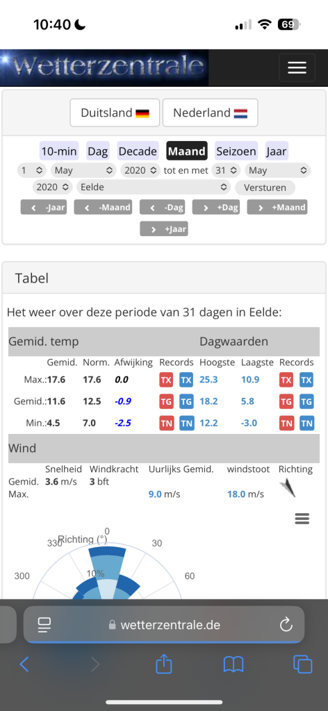 althans die van mij dan, ik dacht mij te herinneren dat het mooie weer vaak in juni begon de laatste jaren en dat mei vaak bewolkt was en de nodige regen bracht en qua Tx niet bijzonder was, wellicht qua Tn wel. Het verschil tussen De Bilt en Winsum kan bijzonder groot zijn. Maar het lijstje van jou Jelmer is toch behoorlijk indrukwekkend qua mei ADS. Na 2018 is mei hier in het noorden toch minder geweest, vorig jaar gaf het trouwens wel een bijzondere periode hier met veel zon en warmte, sjonge dat was ik ook alweer vergeten, man ik moet eerlijk zeggen mijn geheugen laat mij hier in de steek haha. Top dat je met de feiten komt Jelmer.