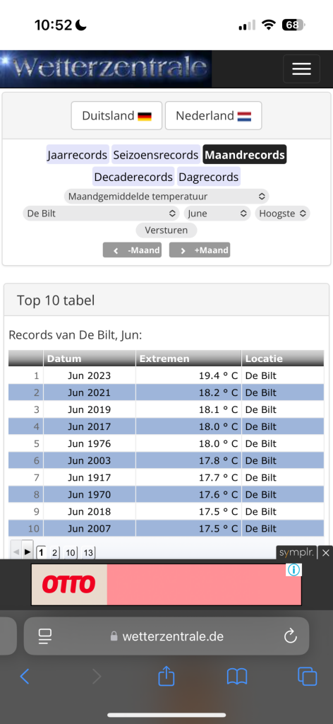 ja dat is best wel bizar hè, juni heeft de laatste jaren zeer hoog ogen gegooid. Dat had dus danig veel indruk gemaakt dat ik dat nog had onthouden. 19,4 in 2023!