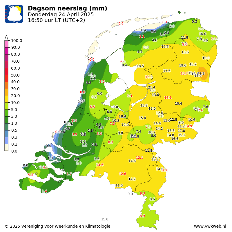 Met bijna 50 mm intussen de 4de natte aprilmaand op rij in Oss e.o.