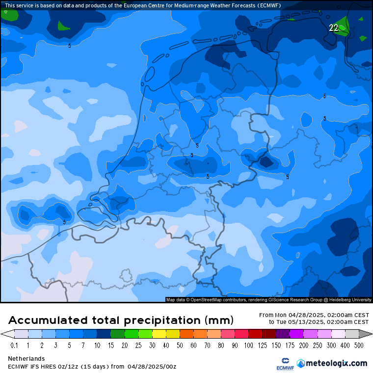 EC OPER juist droog, 1 - 10 mm de komende twee weken.