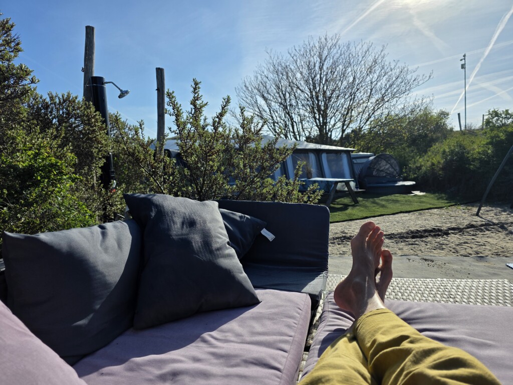 Gisteren ochtend was het 3 graden in m'n voortent, nu alweer een stuk warmer. Volop genieten hier.