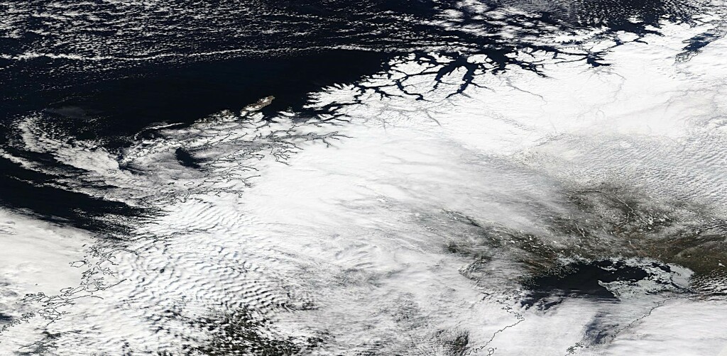 Met nog steeds wat ijs in het noordelijkste deel van de Botnische Golf.