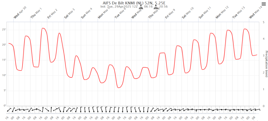 Ook bij AIFS aanhoudend droog voorjaarsweer.