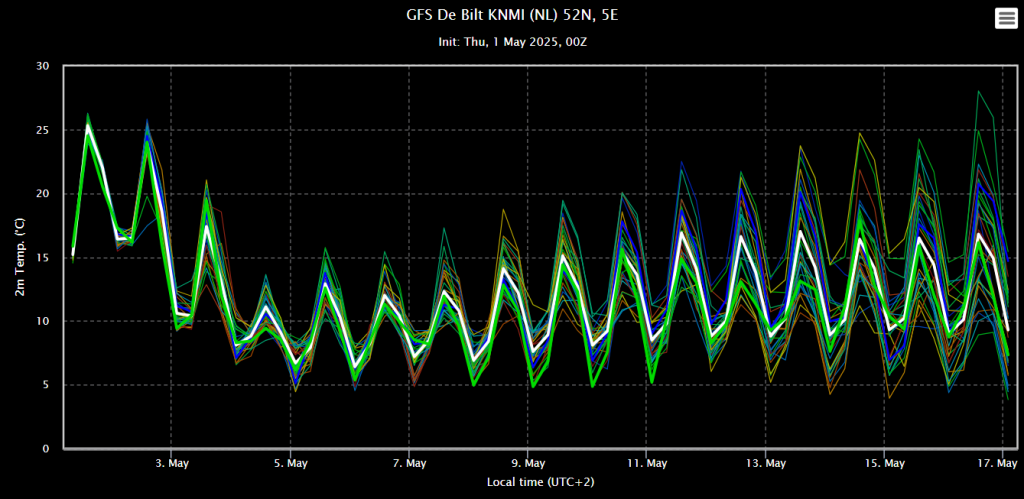 Gedurende de komende periode. Daardoor vrij koel weer, maar wel grotendeels droog. Zon en wolken zullen elkaar aflossen.