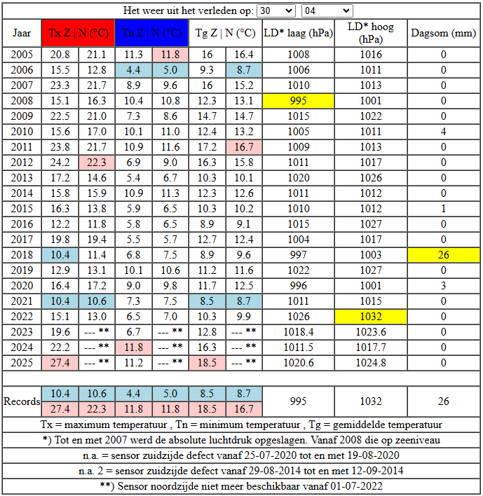Gister met afstand de warmste 30 april in mijn meetreeks