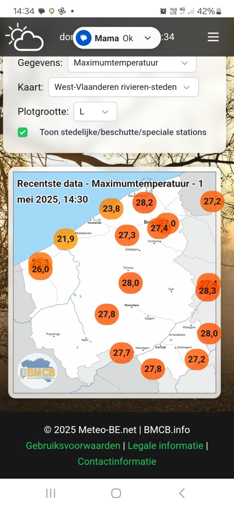 Maximale meting tussen 14u20 en 14u30 hier onder.