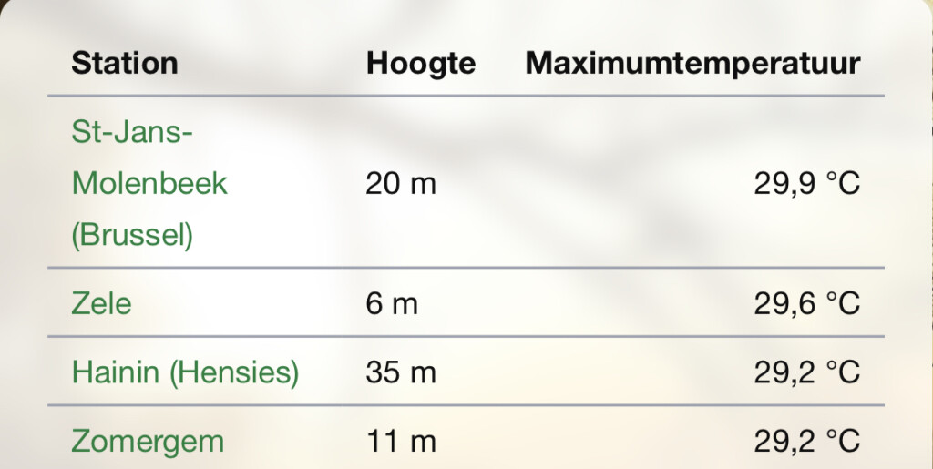 Vorig jaar pas op 25 juni zulke waarden