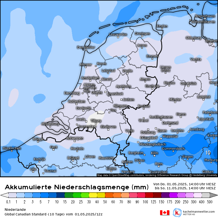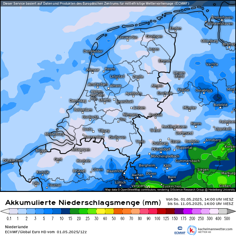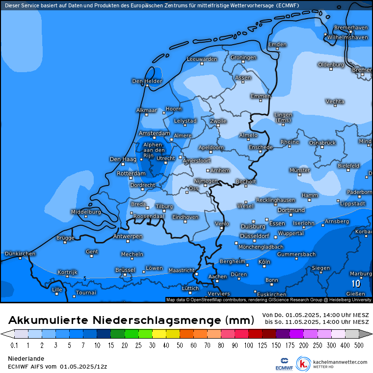 Eerste decade mei lijkt in ieder geval vrij droog te gaan verlopen. Zit er trouwens een of andere rare bias in AIFS voor neerslag boven Woerden en omstreken?
