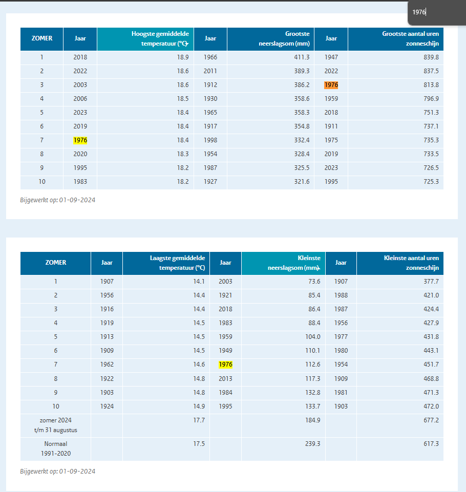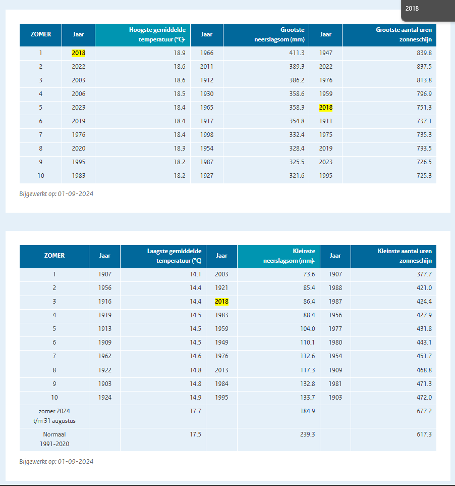 Samen met 1976 is 2018 de enige zomer met 3x top 10 warm/droog/zon