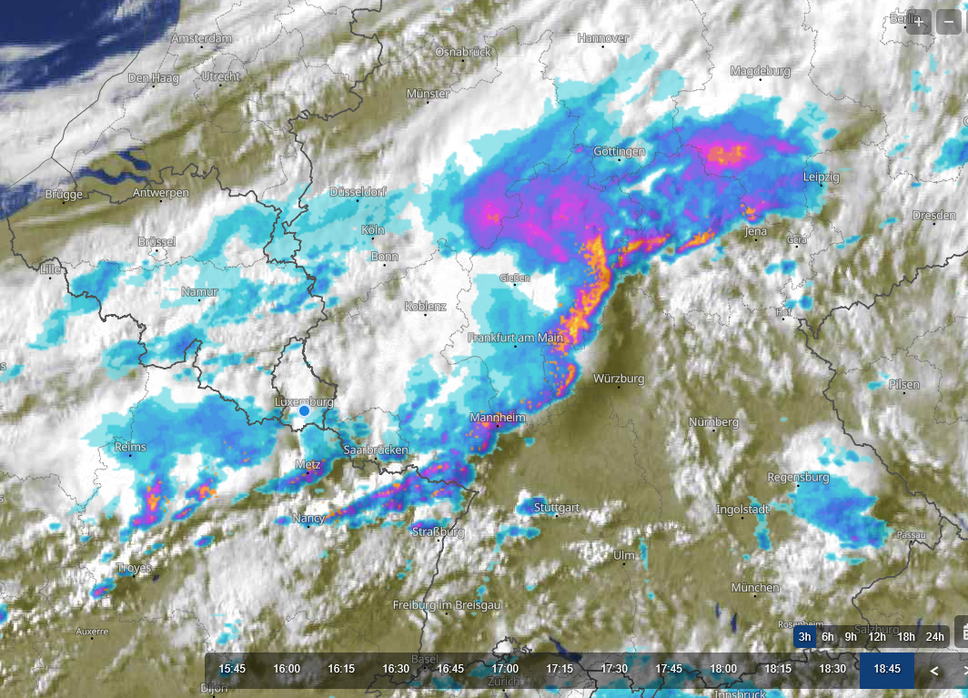 Was het vandaag alhier tenminste een zonnige dag met weinig tot geen bewolking, tijdens passage van het koufront is het zwerk tijdelijk geheel dicht getrokken echter zonder neerslag maar de temperatuur die vandaag hier een maxima behaalde van een graad of 17 en zakte naar 12 graden daarmee wel enigsinds gevoelig frisser.