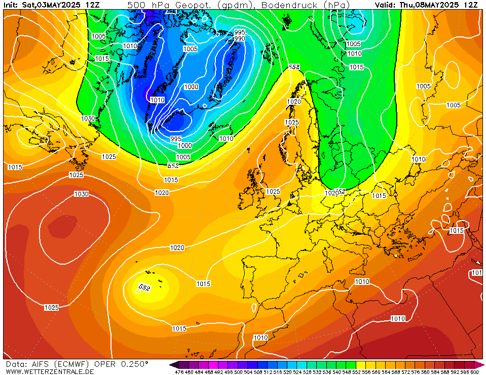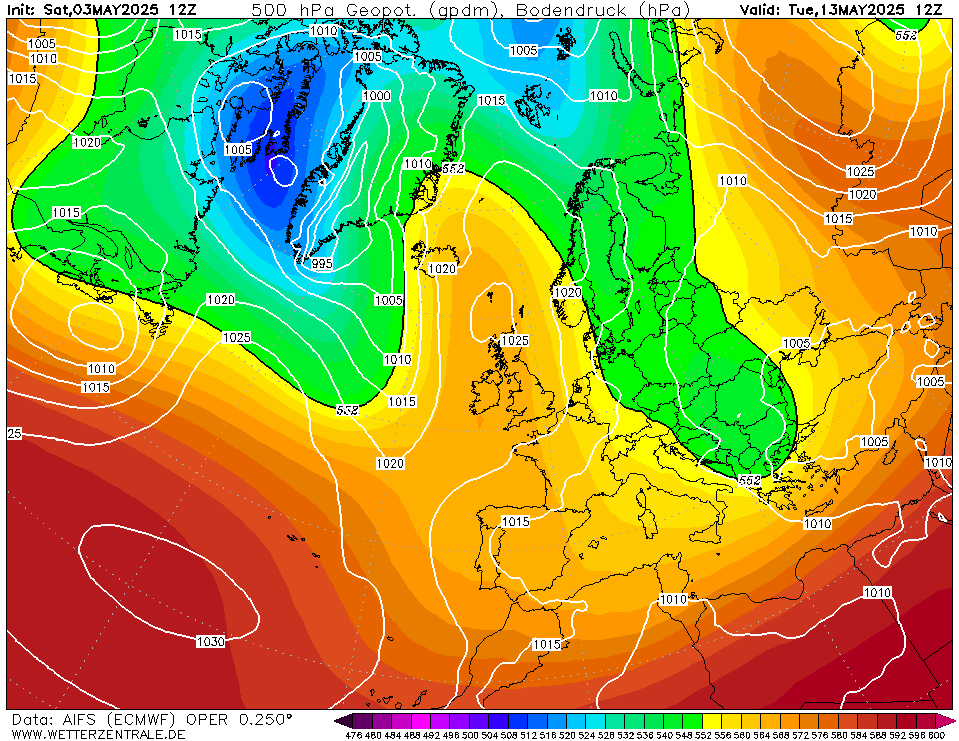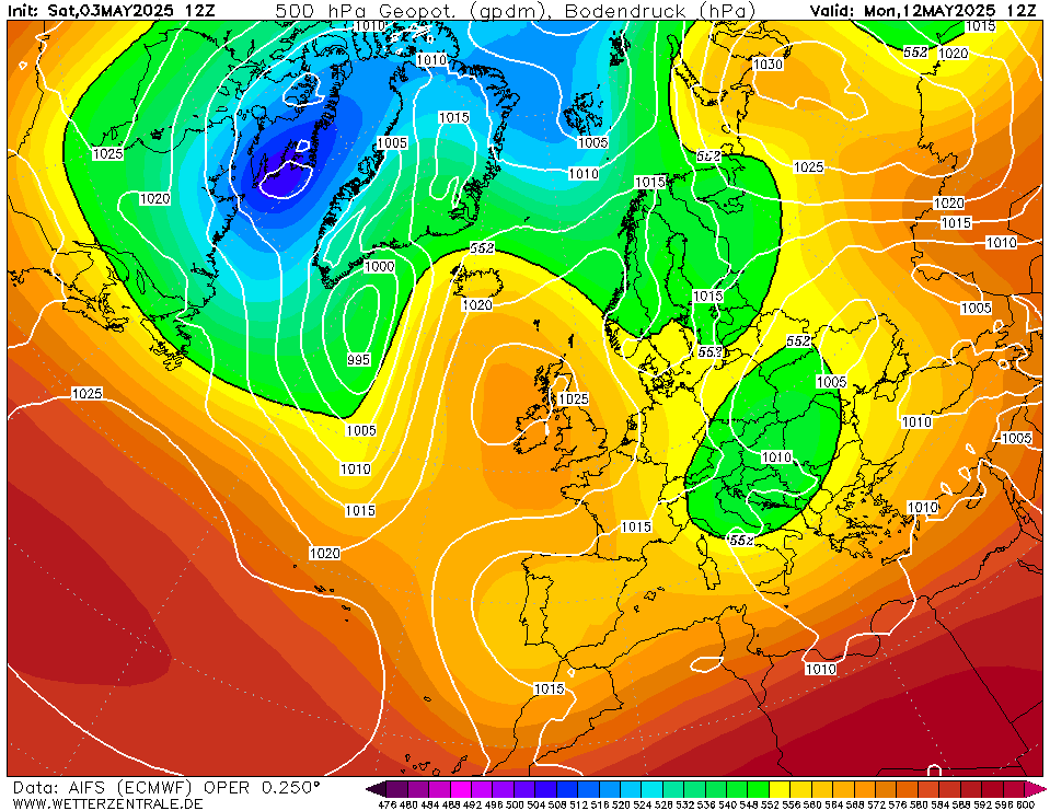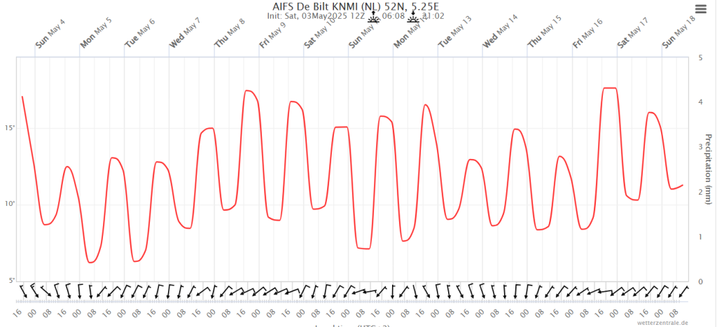 AIFS voorziet de komende 10 dagen steeds een blokkade min of meer ten noordwesten van ons. Daardoor vaak aanvoer van vrij koele lucht.