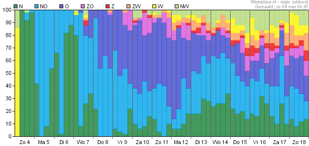 Zeker vanaf woensdag/donderdag gaat een overtuigende meerderheid van de leden toch voor een meer aflandige (noord)oostenwind, in plaats van noordelijk zoals vandaag.
