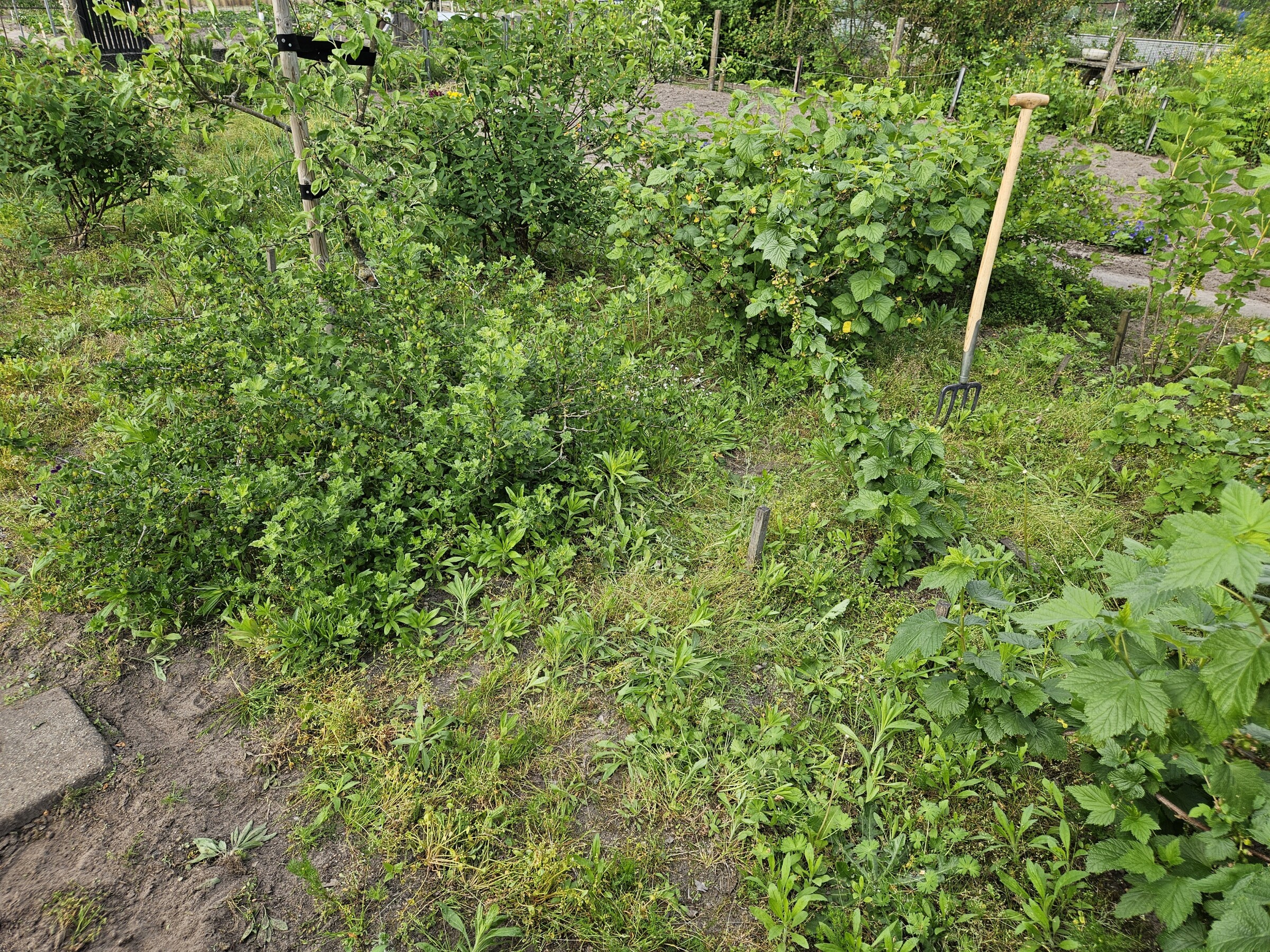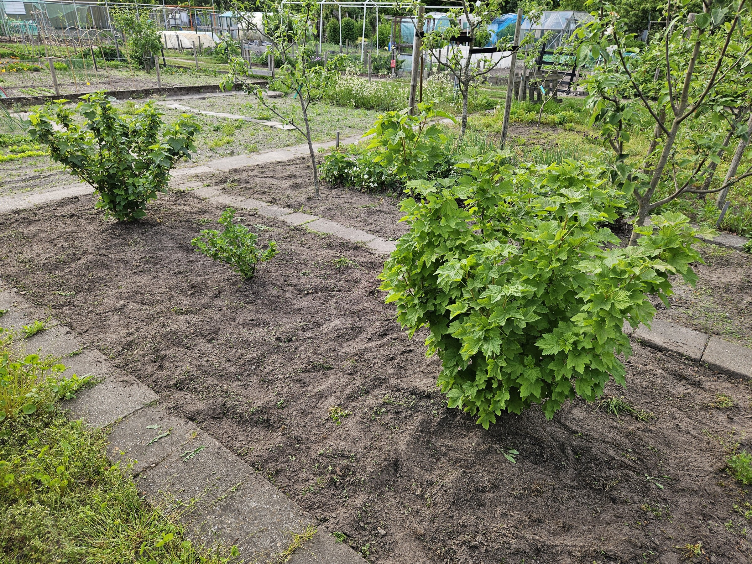 Een sinds maandenlang stukje open grond of een stuk verwilderde grond tussen wat struiken.