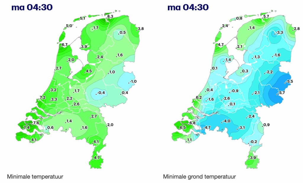 Met vorst op neushoogte en matige vorst aan de grond.
