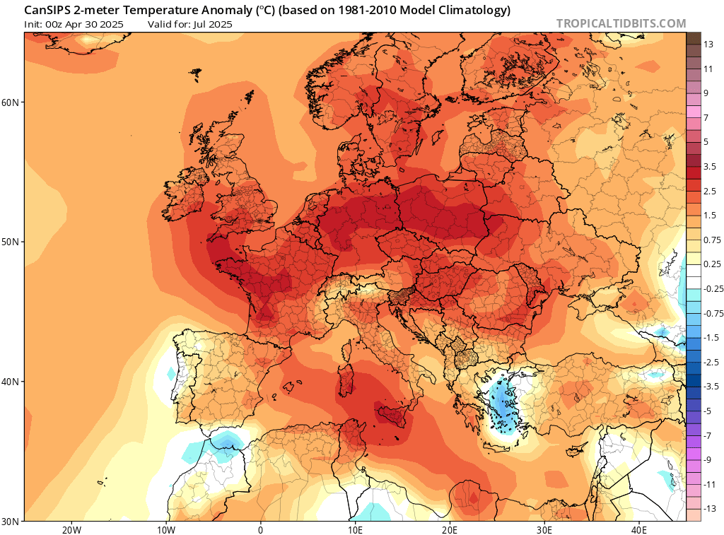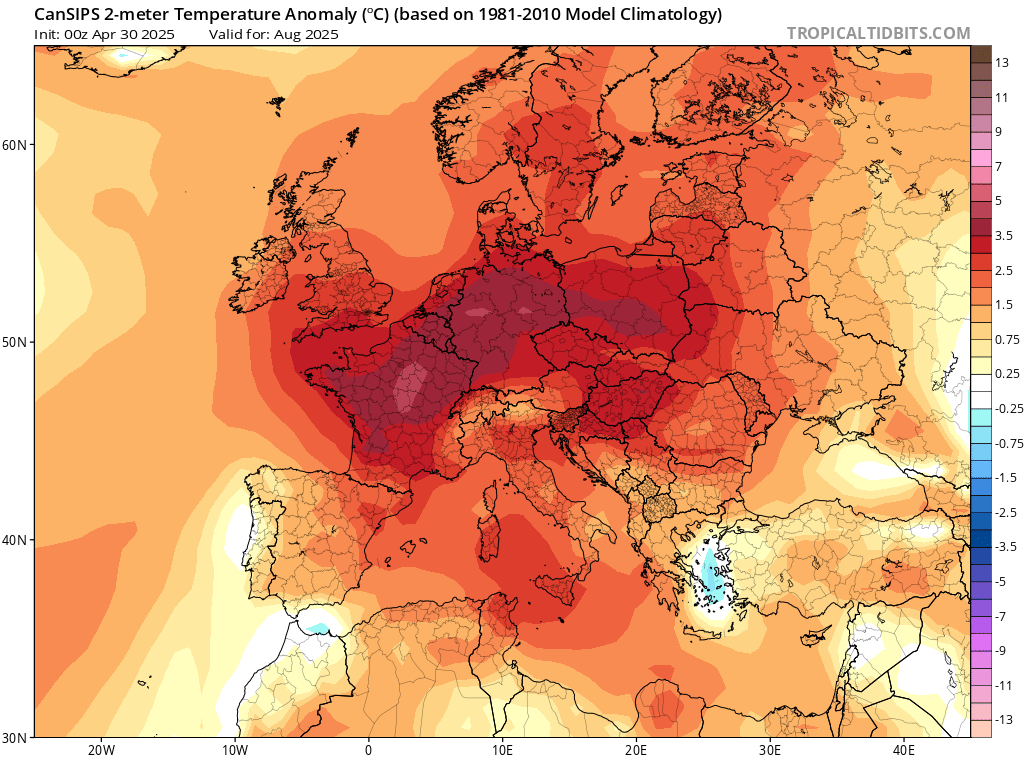 Verder heeft CanSIPS ook nog een warme september en voor de rest hogedruk die vaak baas is tot april 2026. Met te droog weer tot april 2026 aldus de maximale termijn.