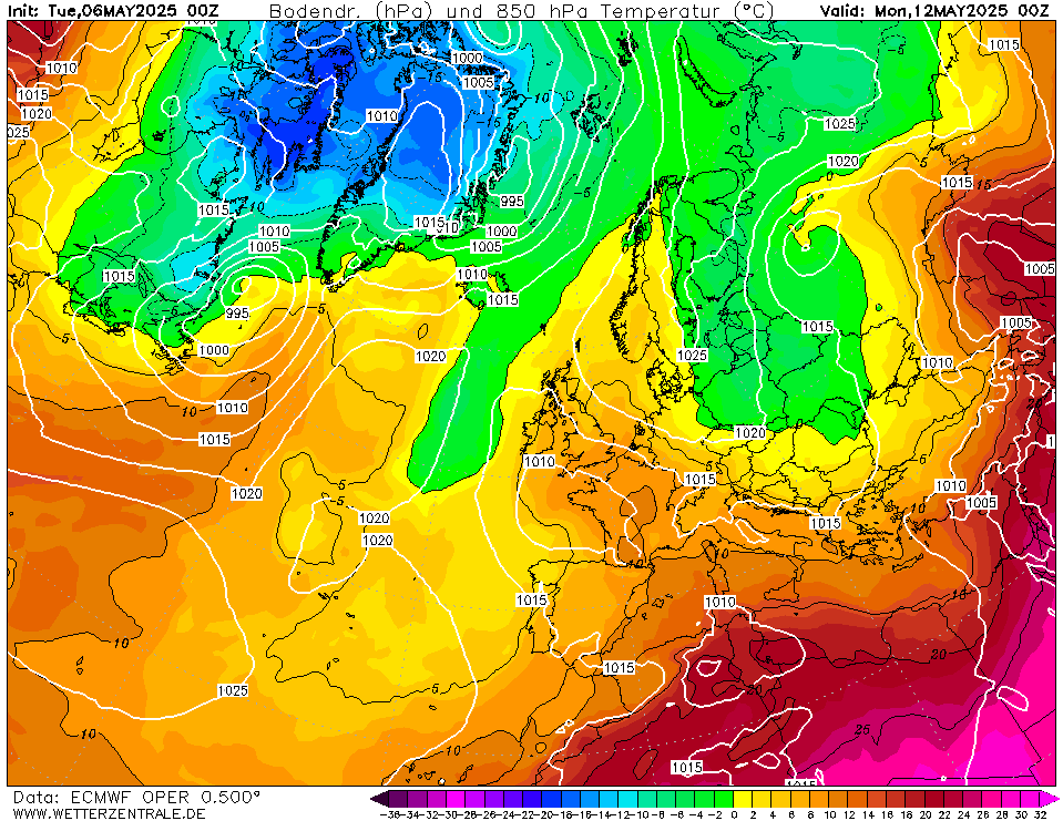 Hogedruk boven onze omgeving. Zonnig en stevig opwarmend (wellicht lokaal weer zomers). Droogte blijft op deze manier zeker in stand. En de bovenluchten blijven warm doordat het hoog iets anders is gevormd dan bijvoorbeeld gisteravond. In het laatste geval zou kille lucht via het oosten bij ons binnenstromen. Dat is in de jongste run duidelijk van de baan. De legendarische lente van ‘25 gaat weer een versnelling hoger schakelen.