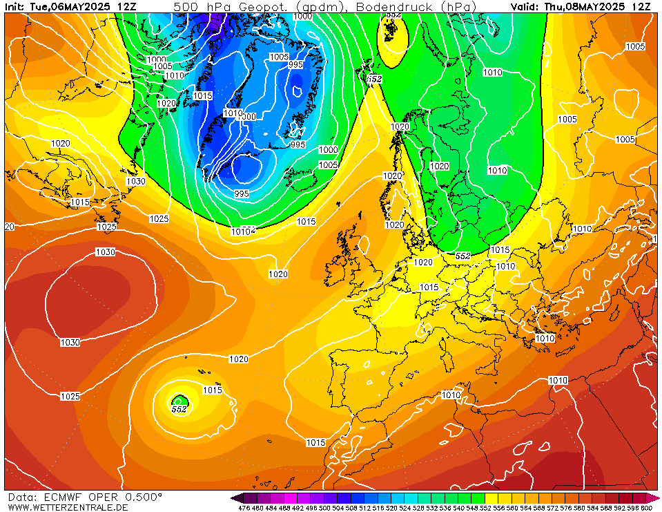 Faeröerhoog smelt samen met de Azoor op de laatste kaart