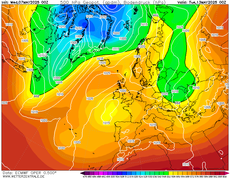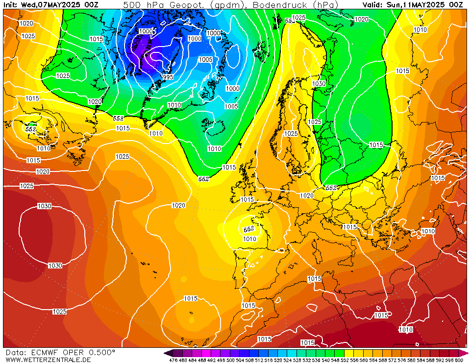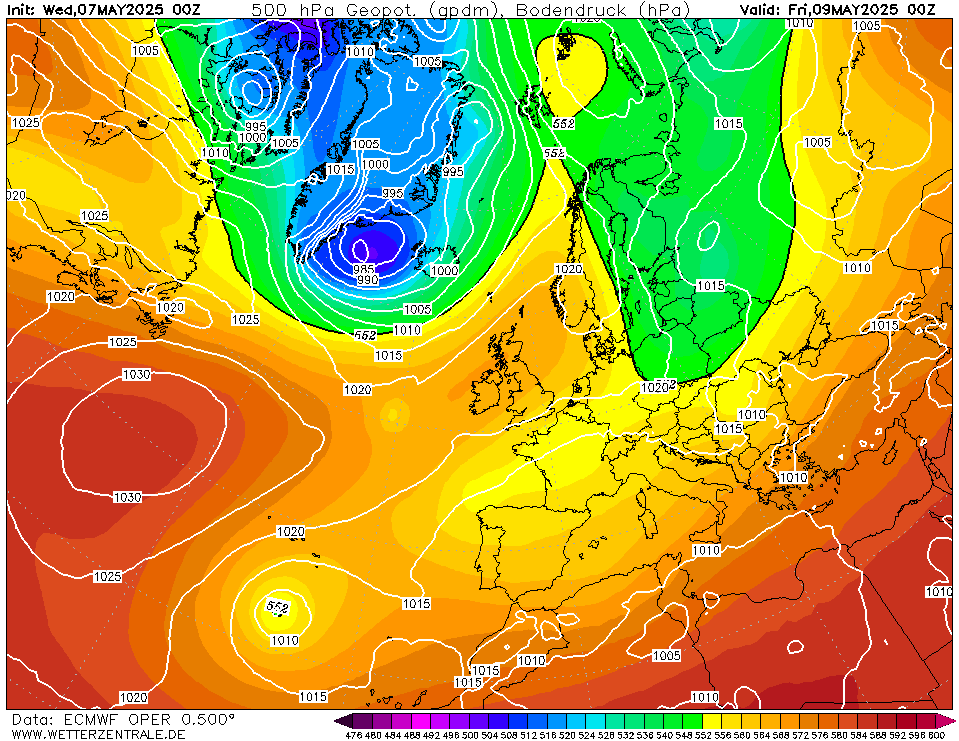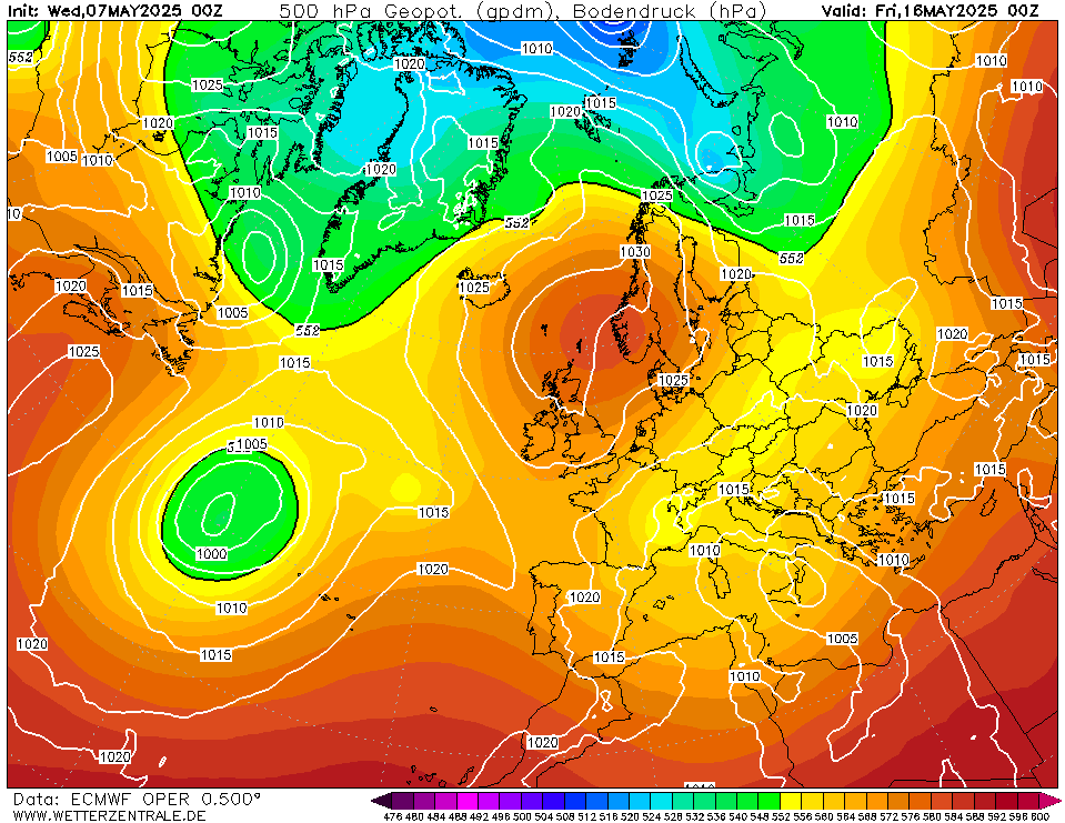 Zeker in vergelijking met gisterenavond toen de kern meer boven de Atlantische Oceaan tussen IJsland en Schotland lag, nu tussen IJsland en Noorwegen ligt. Met daarbij de opmerking dat de vorm duidelijk anders is. In plaats van een meridionale rugas meer zonaal gekanteld, bij ons resulterend in een oostelijker aflandige stroming.
