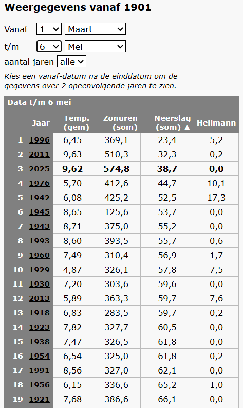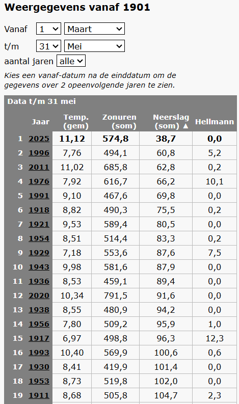 Op dit moment bivakkeren we op een derde plaats. Tot eind van de maand mag er 22,0 mm vallen om 1996 van de troon te stoten. Het kan....