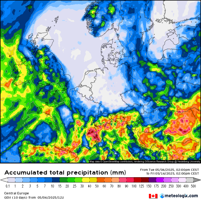 België wel enige neerslag, maar ook niet geweldig veel.