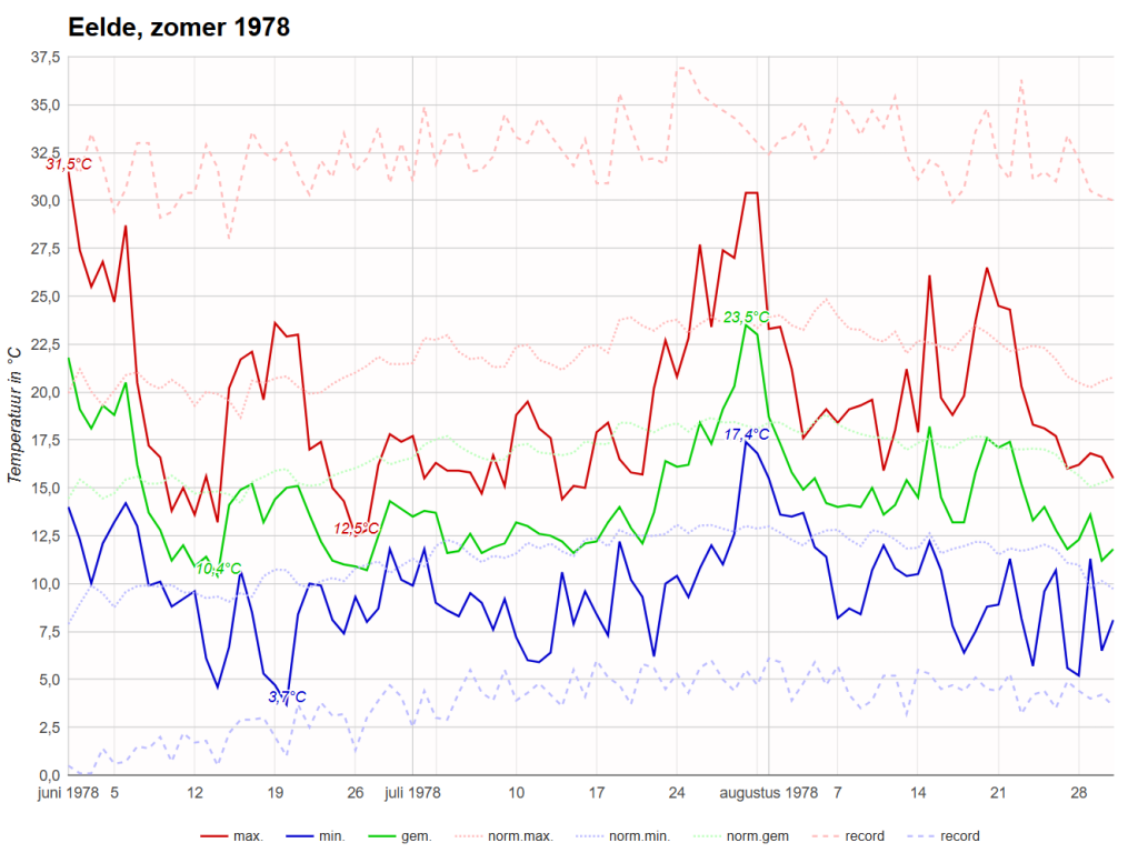 Warmste dag in Eelde voor zomer 1978 was nota bene 1 juni.