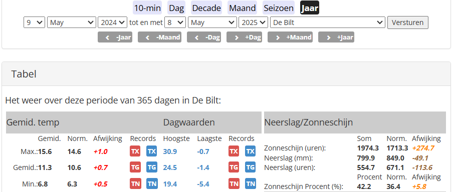 Opvallend ook de weinige neerslaguren. Slechts 555 tegenover een normaal van 671 neerslaguren.