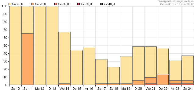 De verwachting voor daar is zelfs koeler