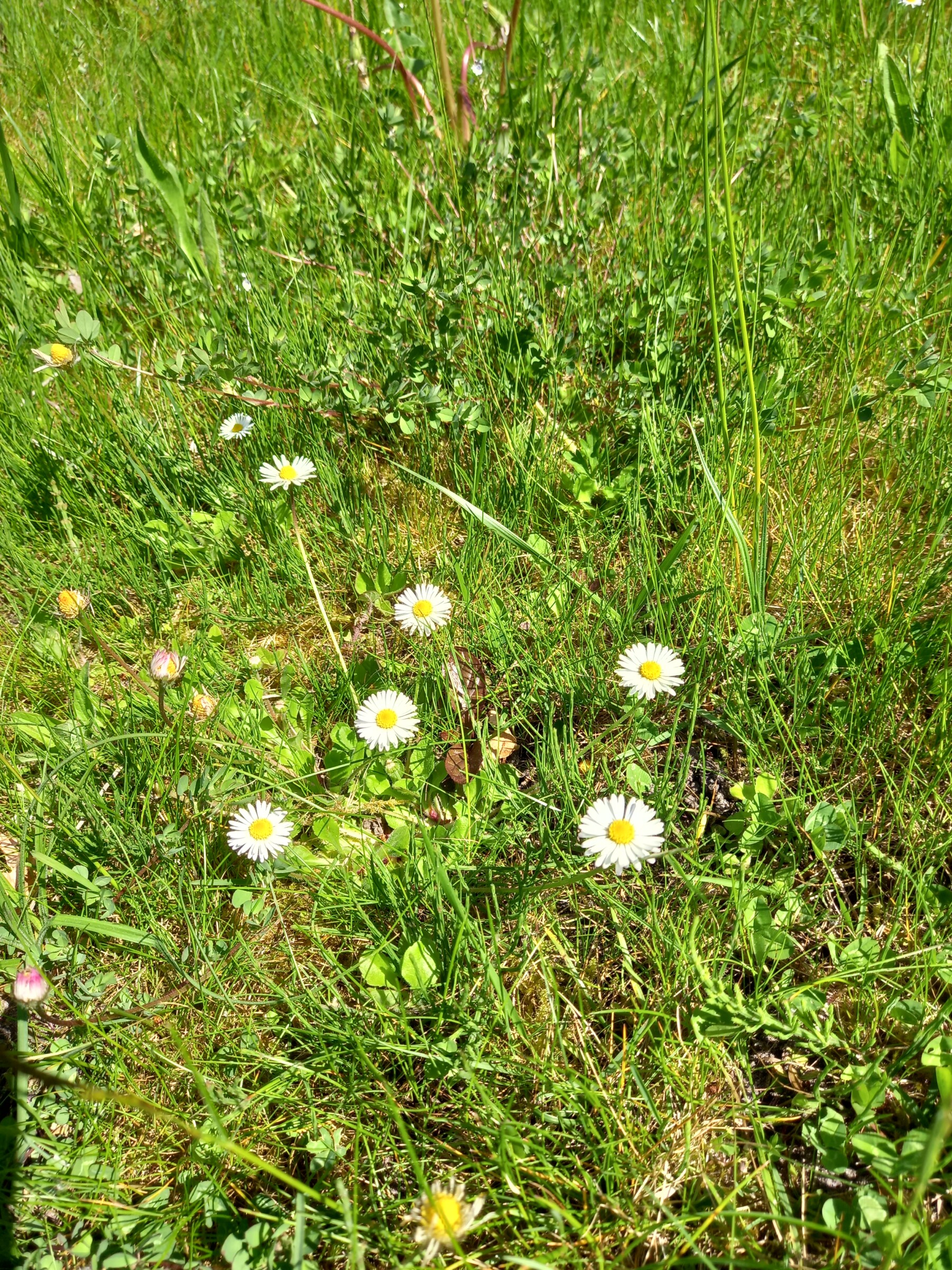 ongemaaid gras waarin de merels nu voedsel zoeken voor het eerste legsel. Toch wel wat groeiachterstand in de tuin door de aanhoudende droogte.
