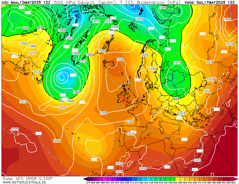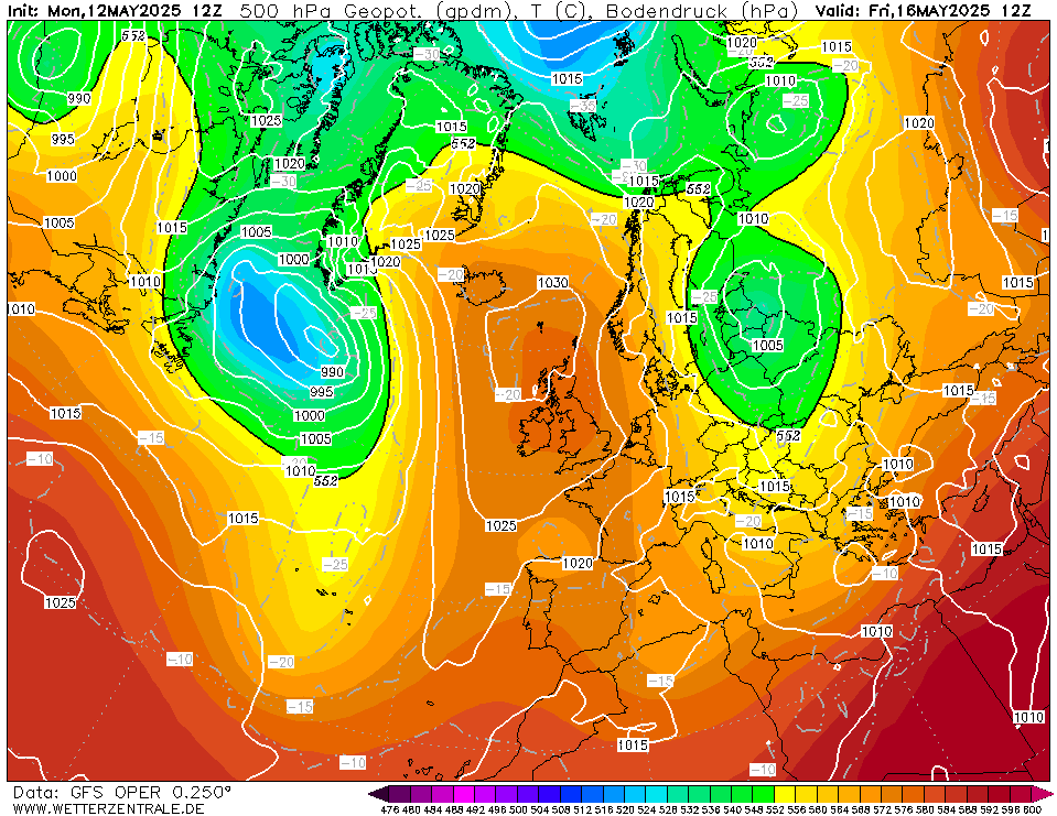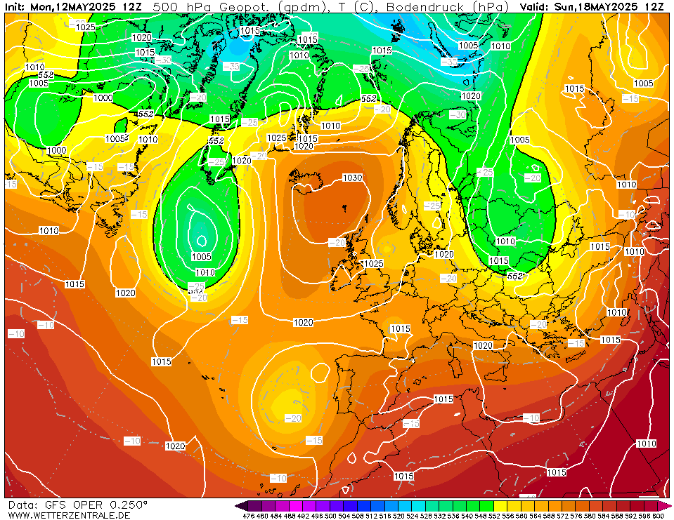 Trekt ook een klein koudeputje noordelijk om de blokkade heen. Misschien actief genoeg om enige neerslag te brengen rondom de Noordzee?