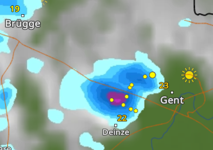 mooie ontwikkeling van de bui net ten ZW van, helaas nauwelijks wat druppels maar denk dat het lokaal gegoten zal hebben