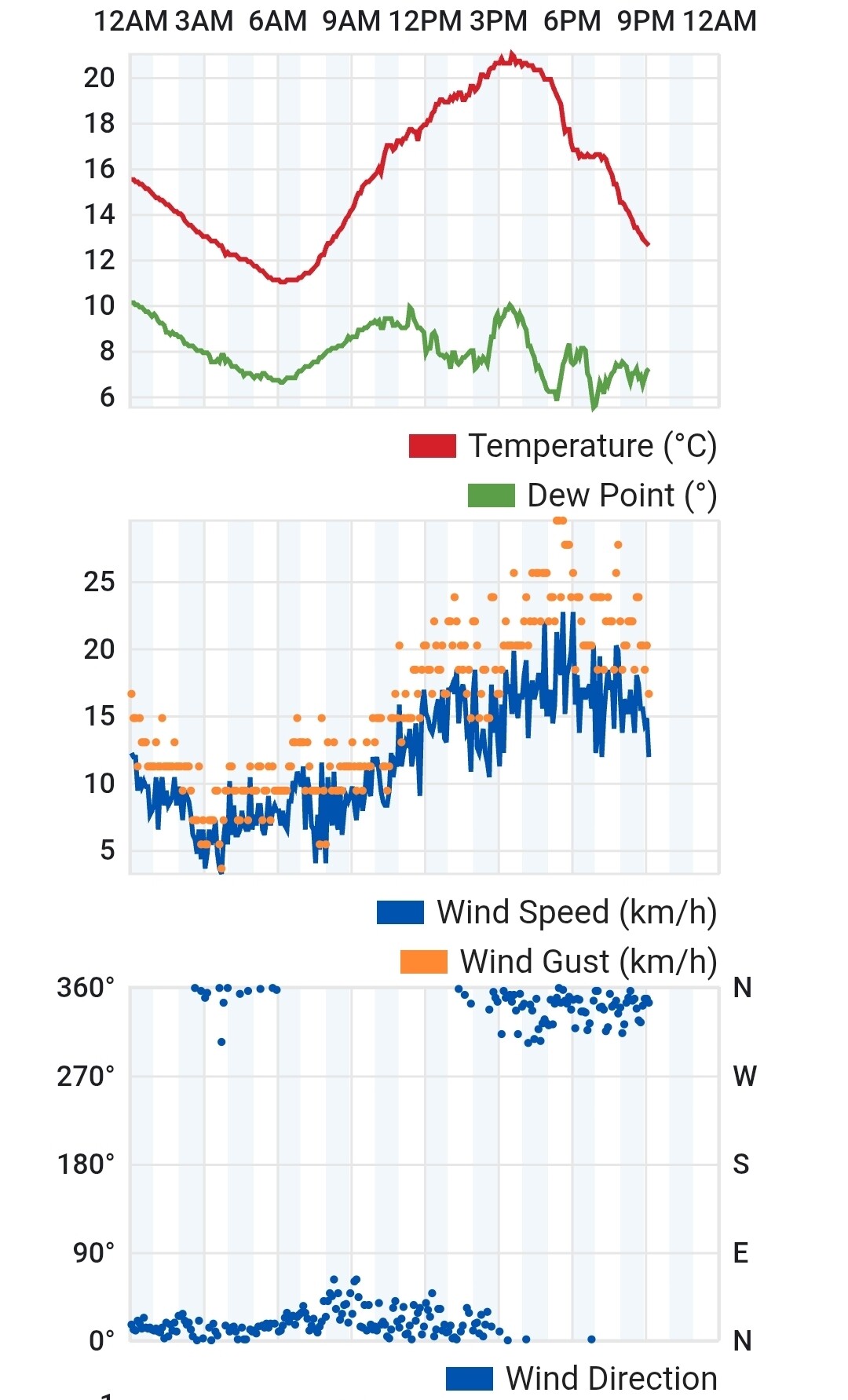 Mooi te zien was dat afgelopen middag, zodra de wind uit het NNW kwam, de temperatuur met enige vertraging naar beneden ging.