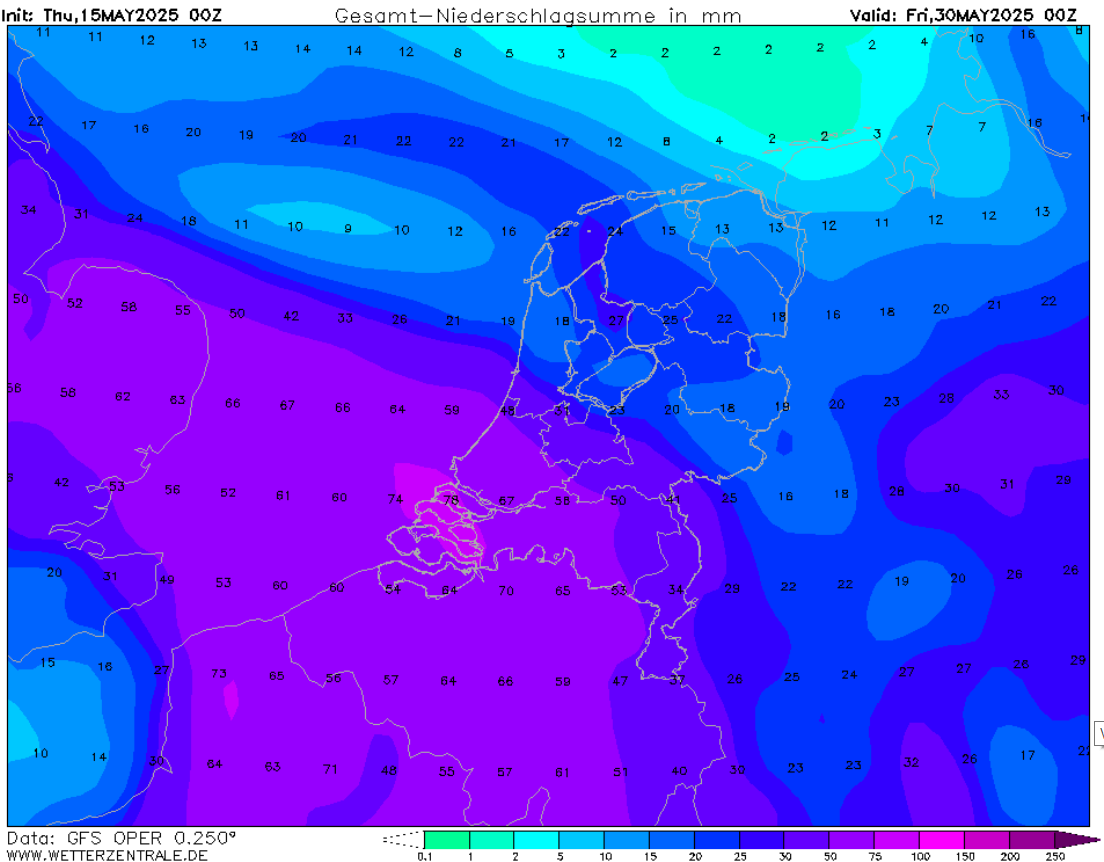 GFS is voor het zuidwesten wel erg scheutig.