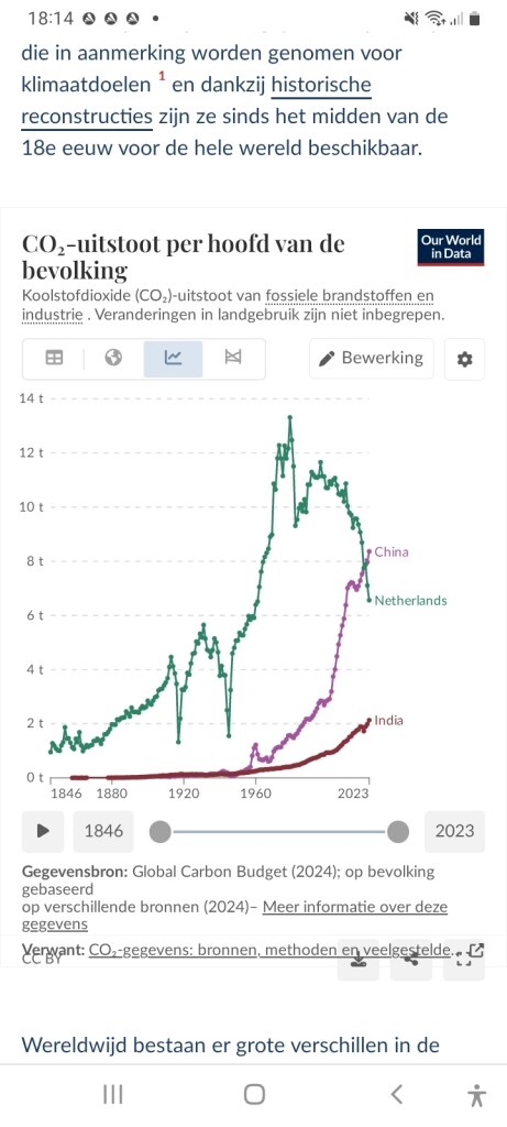 Per saldo denk ja aan uitstootvermondering maar dat is nog altijd teveel door het gebruik van fossiele brandstoffen. De grote landen die je noemt zijn nu juist de lande die a. Per persoon veel minder verantwoordelijk zijn voor de uitstoot afgelopen 150 jaar en b. De grootste slag maken in het verduurzamen. Vooral in China en India gaat het nu hard. Het beeld van China wordt vertroebeld doordat de uitstoot van westerse landen daarheen is verplaatst.
