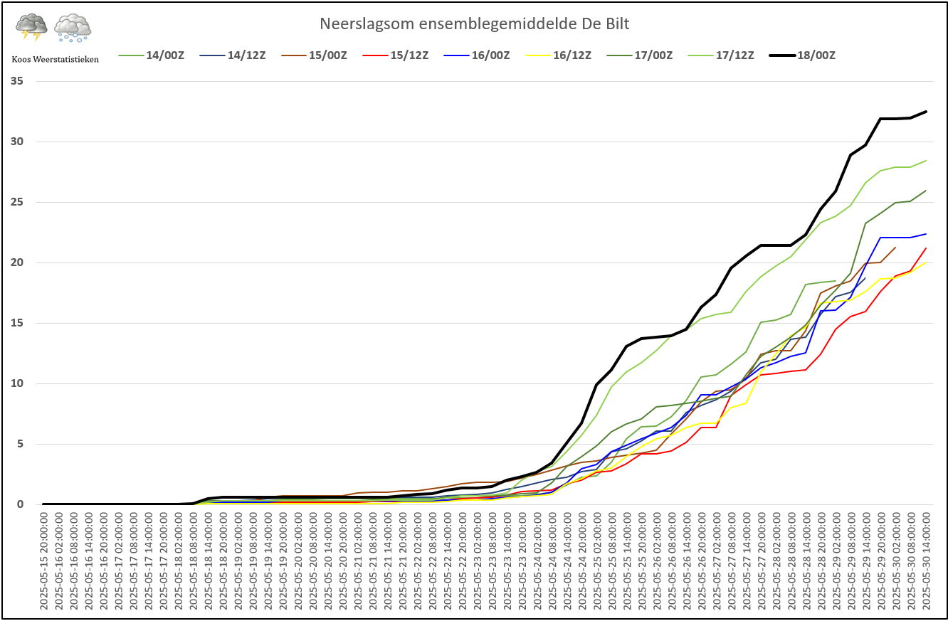 Het gemiddelde van de neerslagpluin gaat toch naar 40mm
