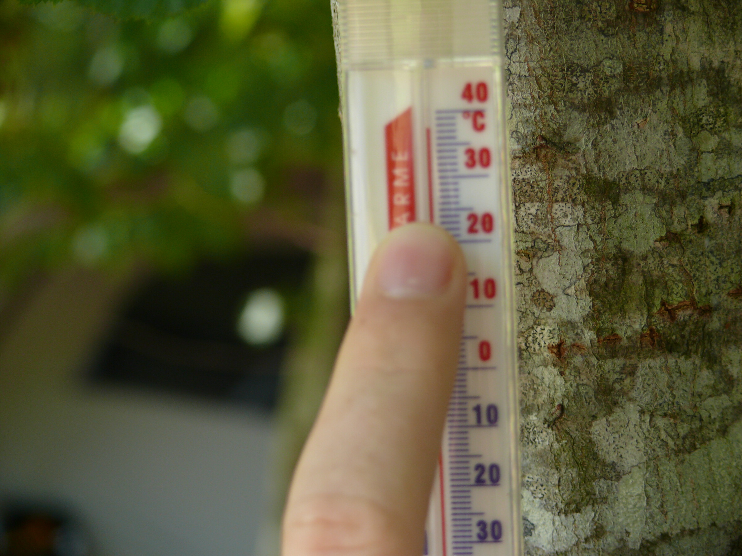 In de Dordogne op de camping had ik altijd een thermometer in een boom hangen.