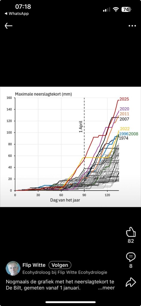 In Volkel nu ook het grootste neerslagtekort voor deze datum