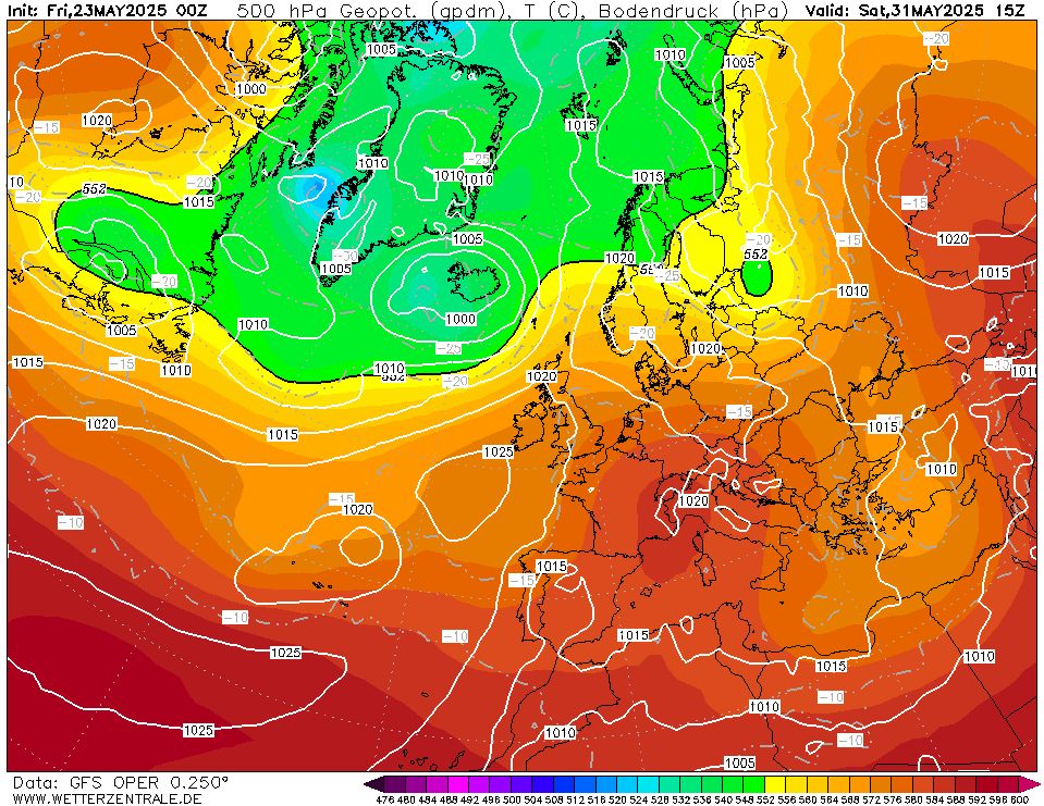 boven Europa met hete lucht uit het zuiden. Afhankelijk van de positie dan ook onweerskansen of droger weer... Kan in die zin ook blokkerend werken. De staafdiagram zegt niet altijd alles