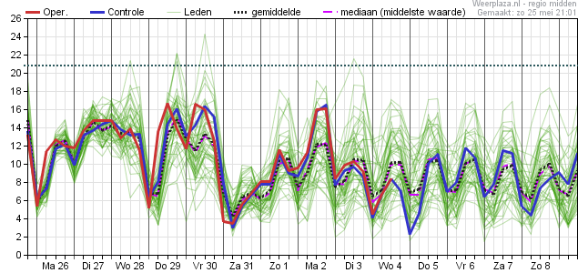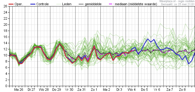 Mooi strak horizontaal Tx-verloop, naar de klimatologie.