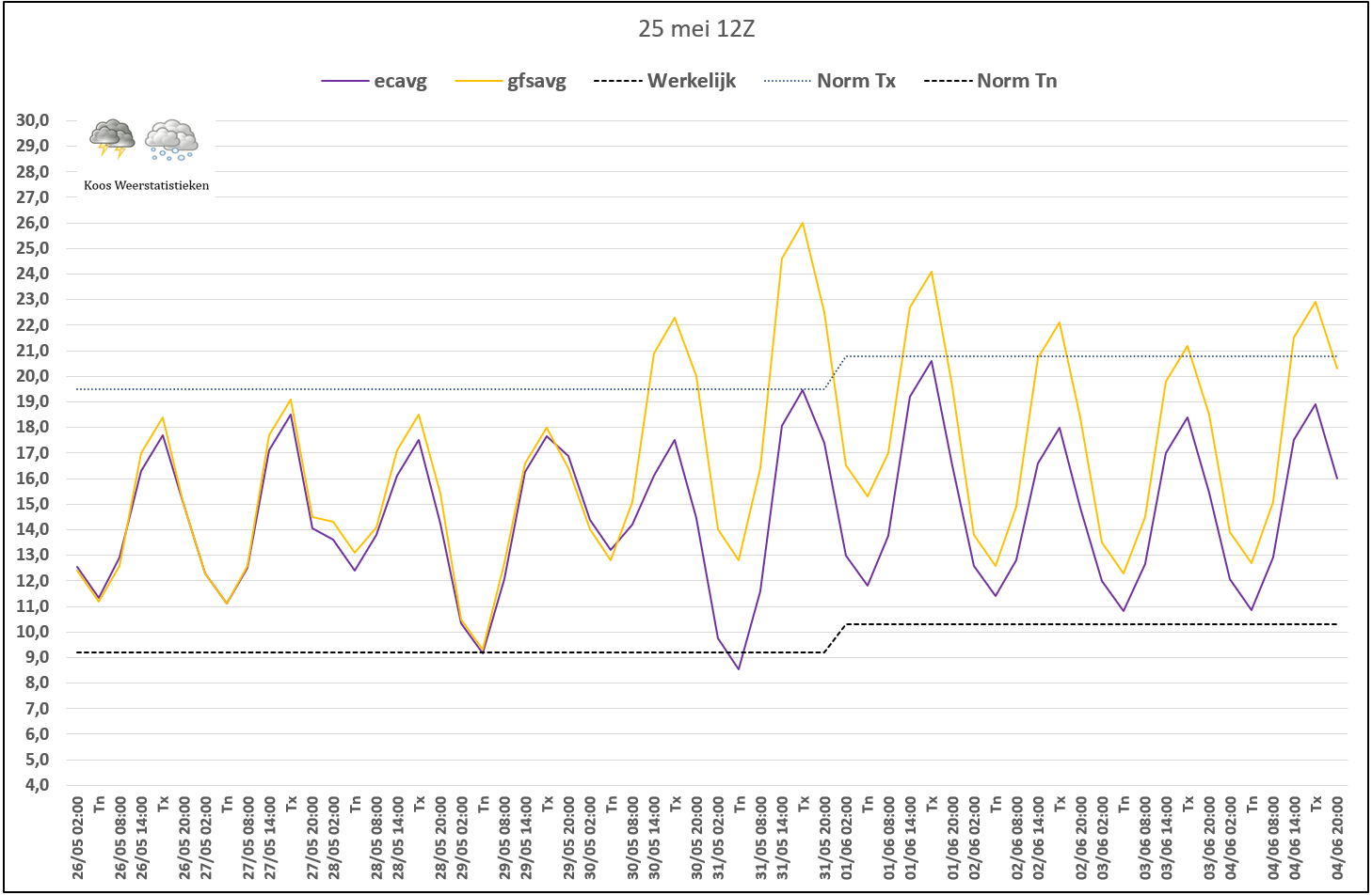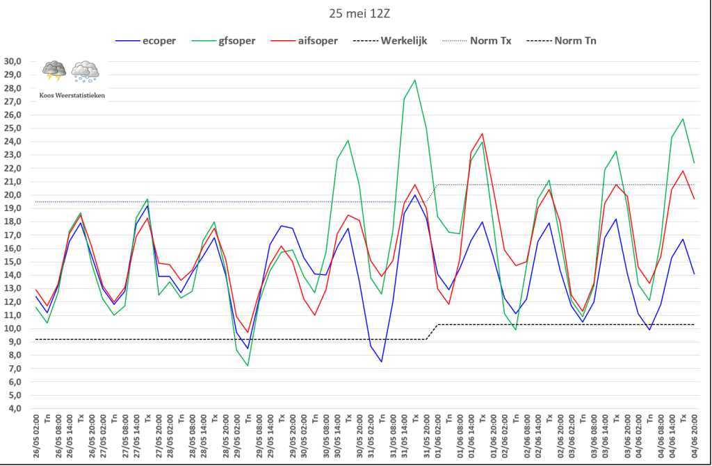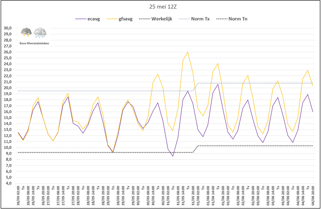 Mooi strak horizontaal Tx-verloop, naar de klimatologie.
