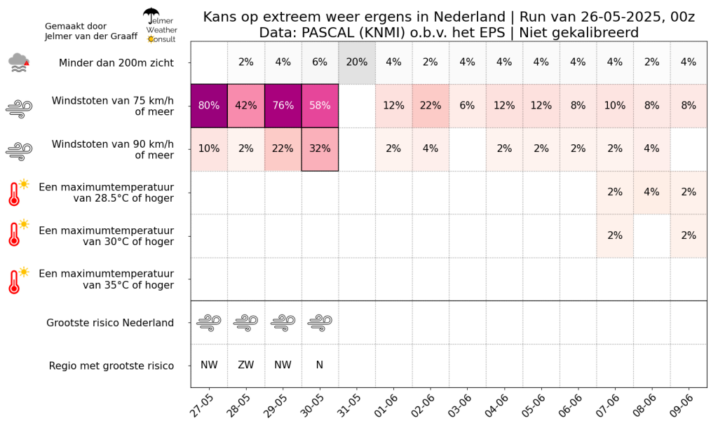 Morgen ook al kans op > 75 km/uur. Guidance KNMI