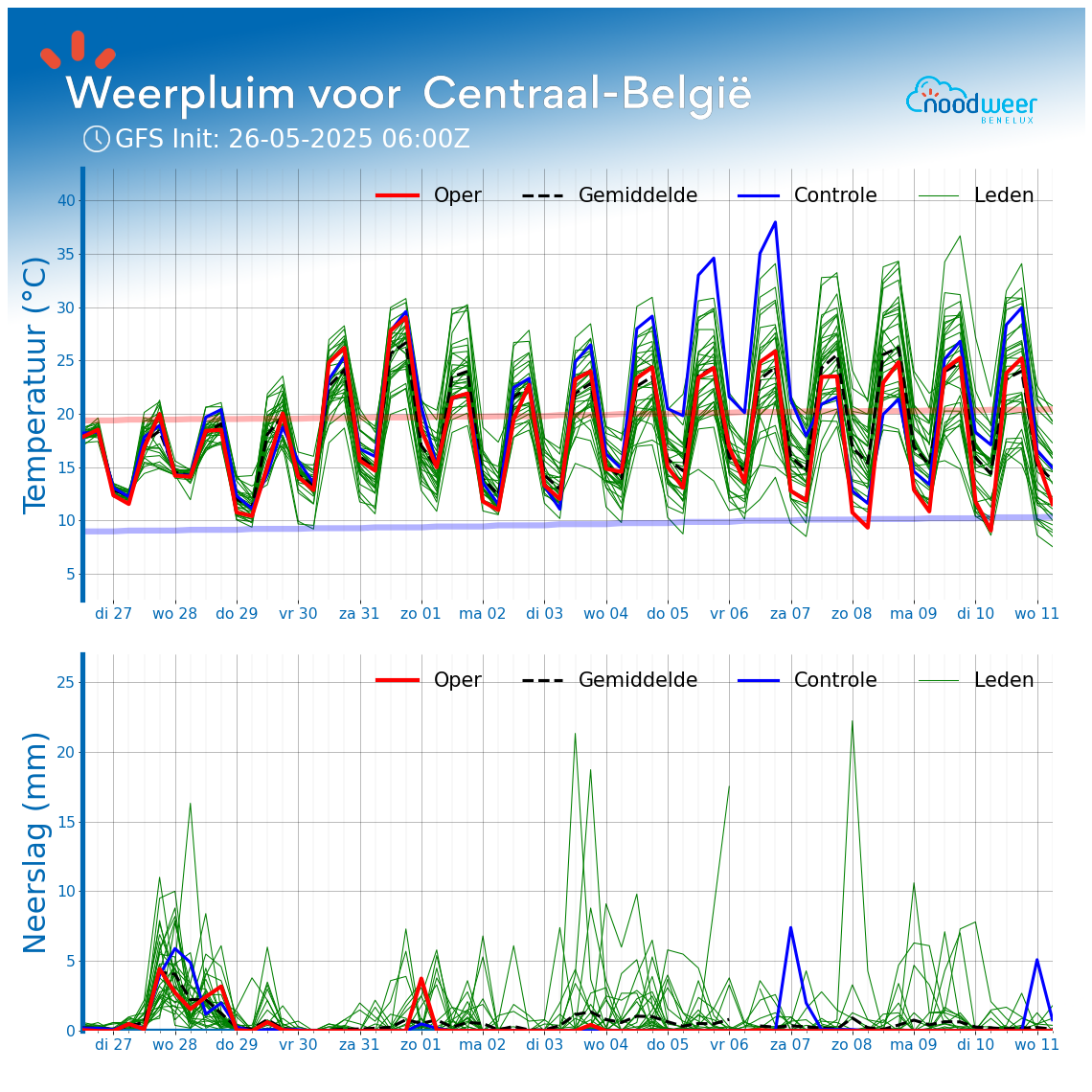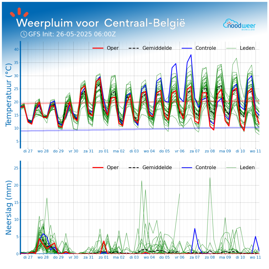 De maxima liggen nog steeds een stuk hoger dan in het EPS. EPS is tevens voor vrijdag al bijgesteld naar boven. Het is eerder een middenweg tussen beide lijkt me. EC heeft een paar runs ook > 50mm getoond nog voor eind mei, dat zit er ook (voorlopig) niet meer in.