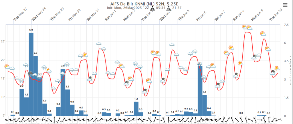 Geen onaardige pluim. De komende dagen de meeste neerslag.